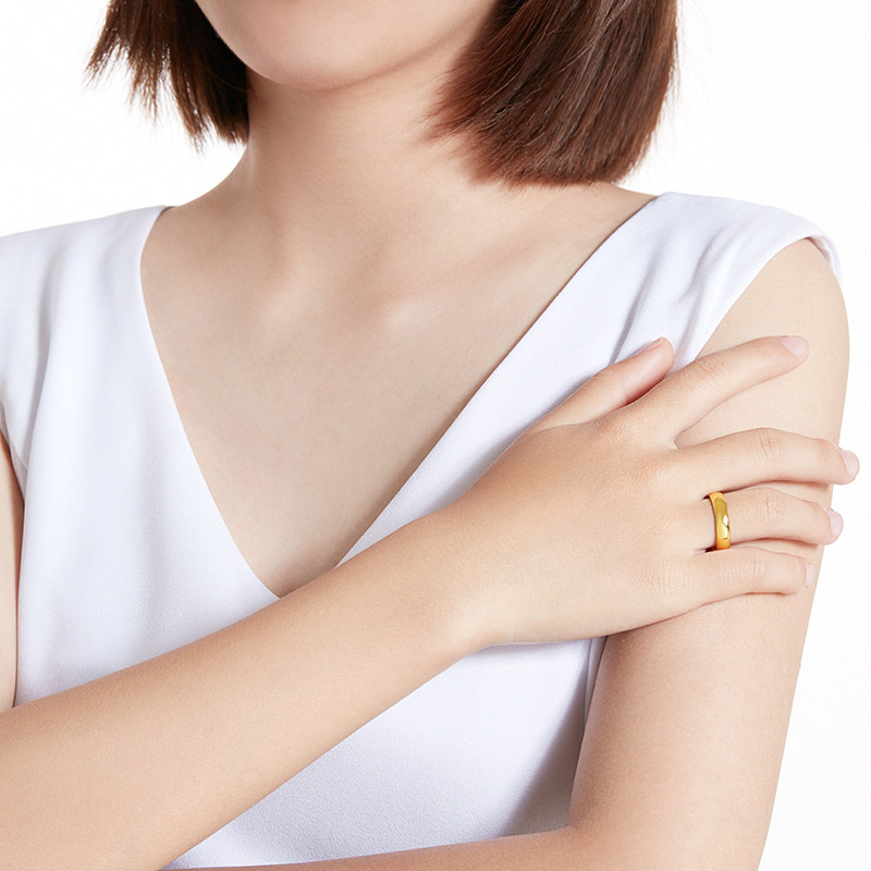 Liuguifu jewelry glossy gold ring pure gold 999 live mouth adjustable ring simple pair ring for men and women