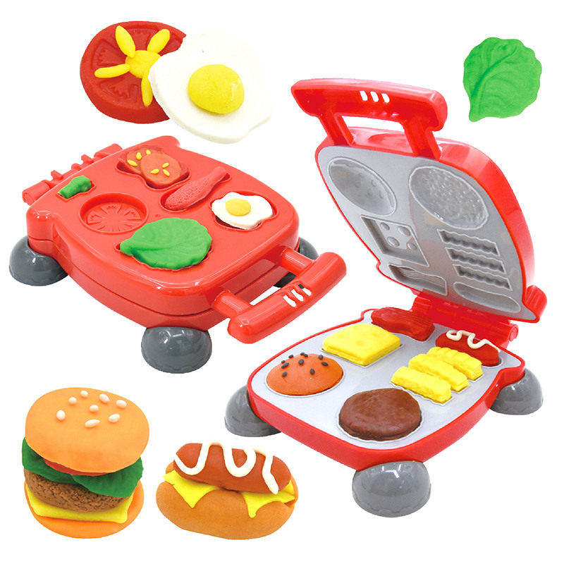 1 hamburger machine + 8 colors 56g of color clay + 1 waffle + 4 rice ball molds + 6 accessories