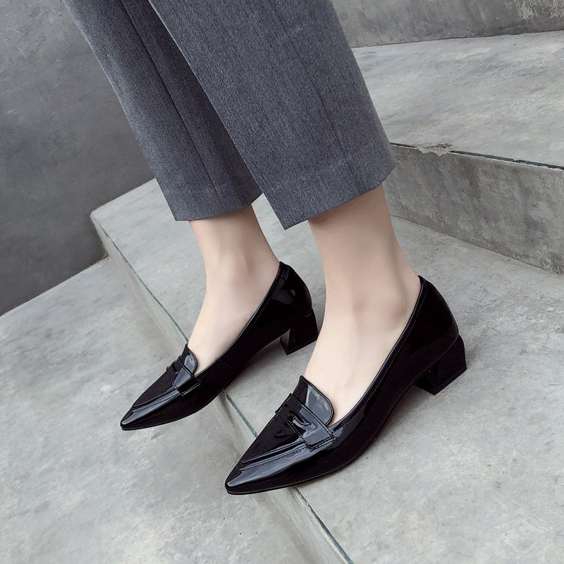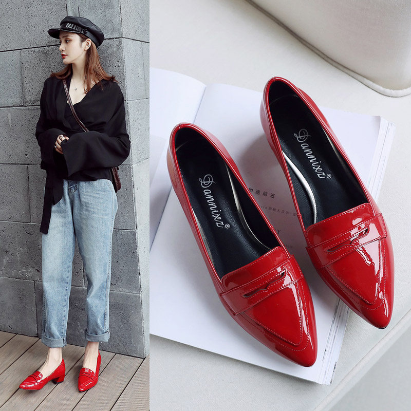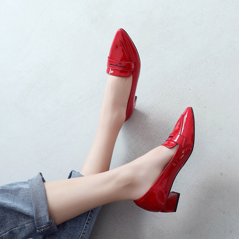 Slippers Spring New Englishred Married Shoes Slippers Leather High Heels Black Heels
