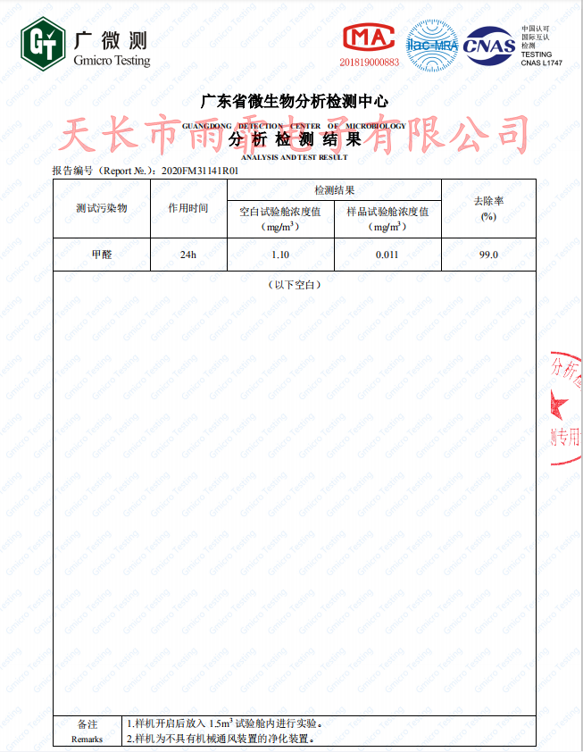 Formaldehyde CADR value: