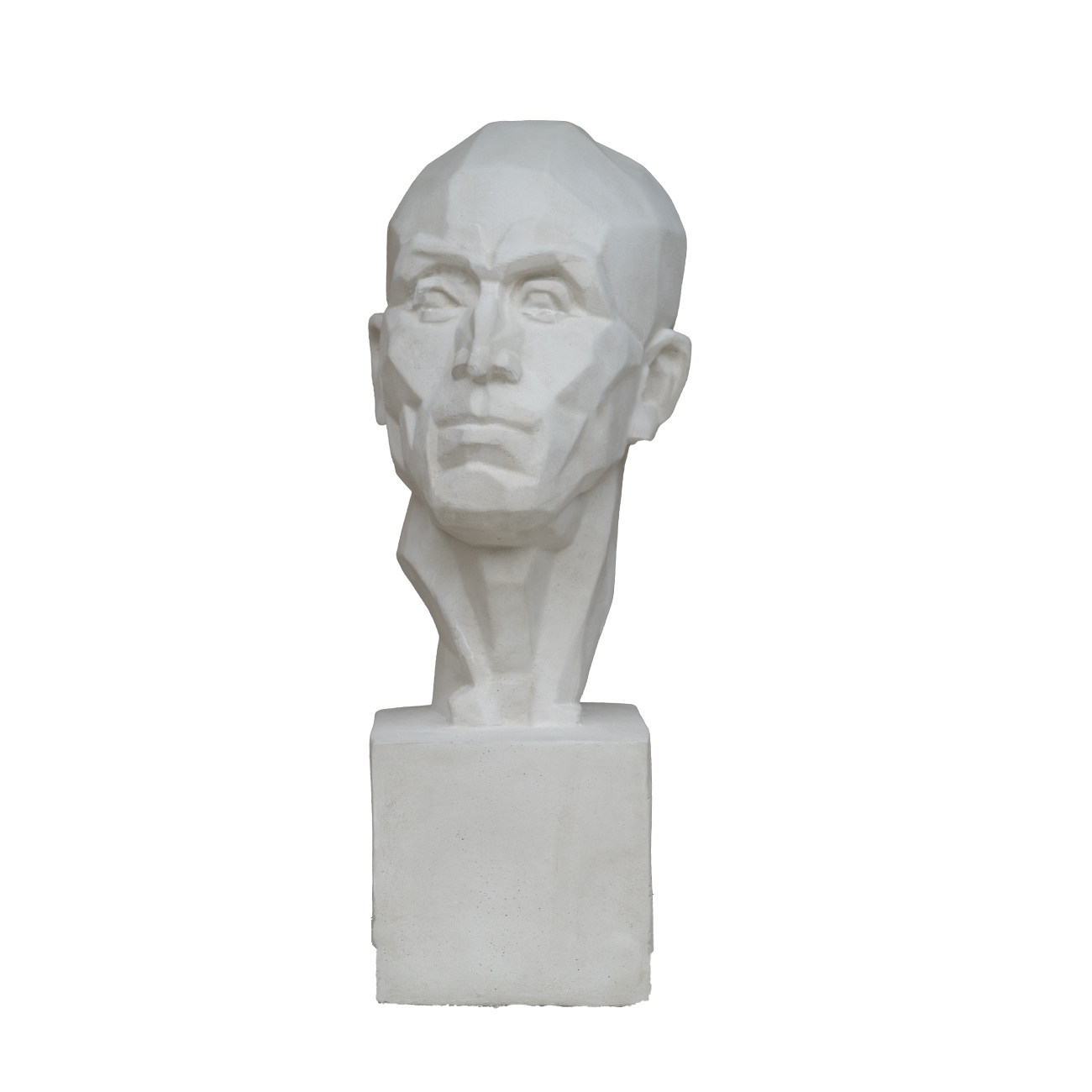 A plaster statue of a peasant block face.