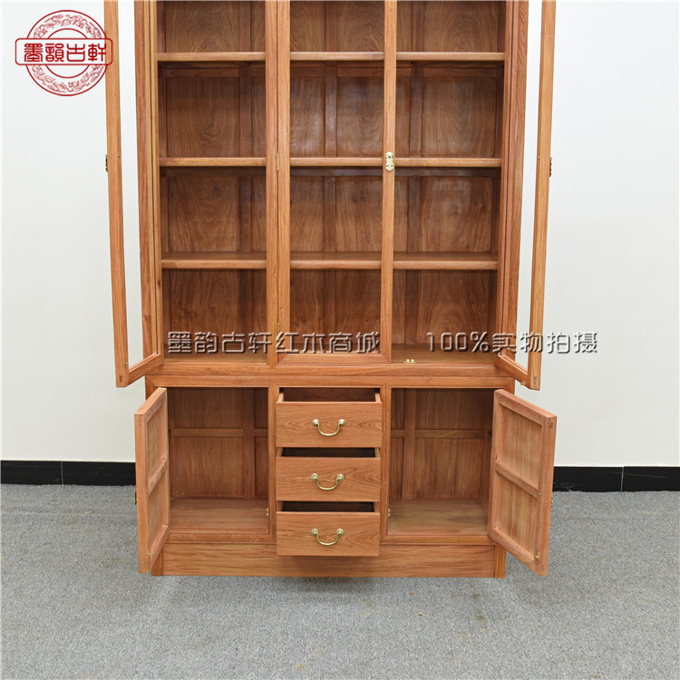 Mahogany furniture Burmese rosewood bookcase Chinese antique solid wood locker Big fruit red sandalwood log display cabinet