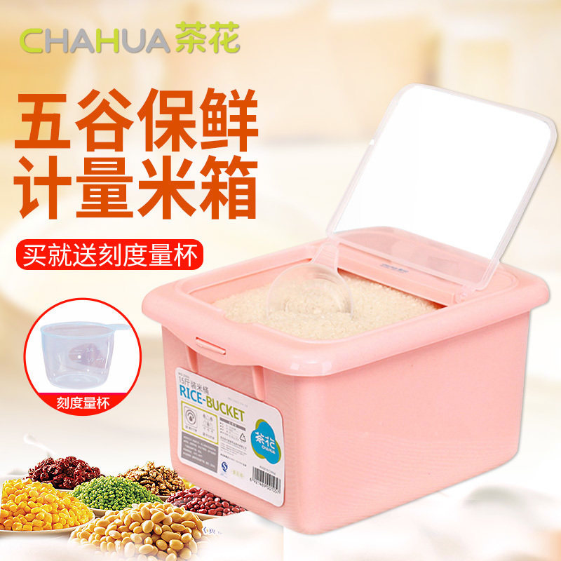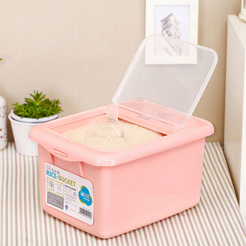 Tea Flower Plastic Rice Bucket Backet Kitchen Waterproof Metal Cover with Rice Case thickness 15 kg 20 kg