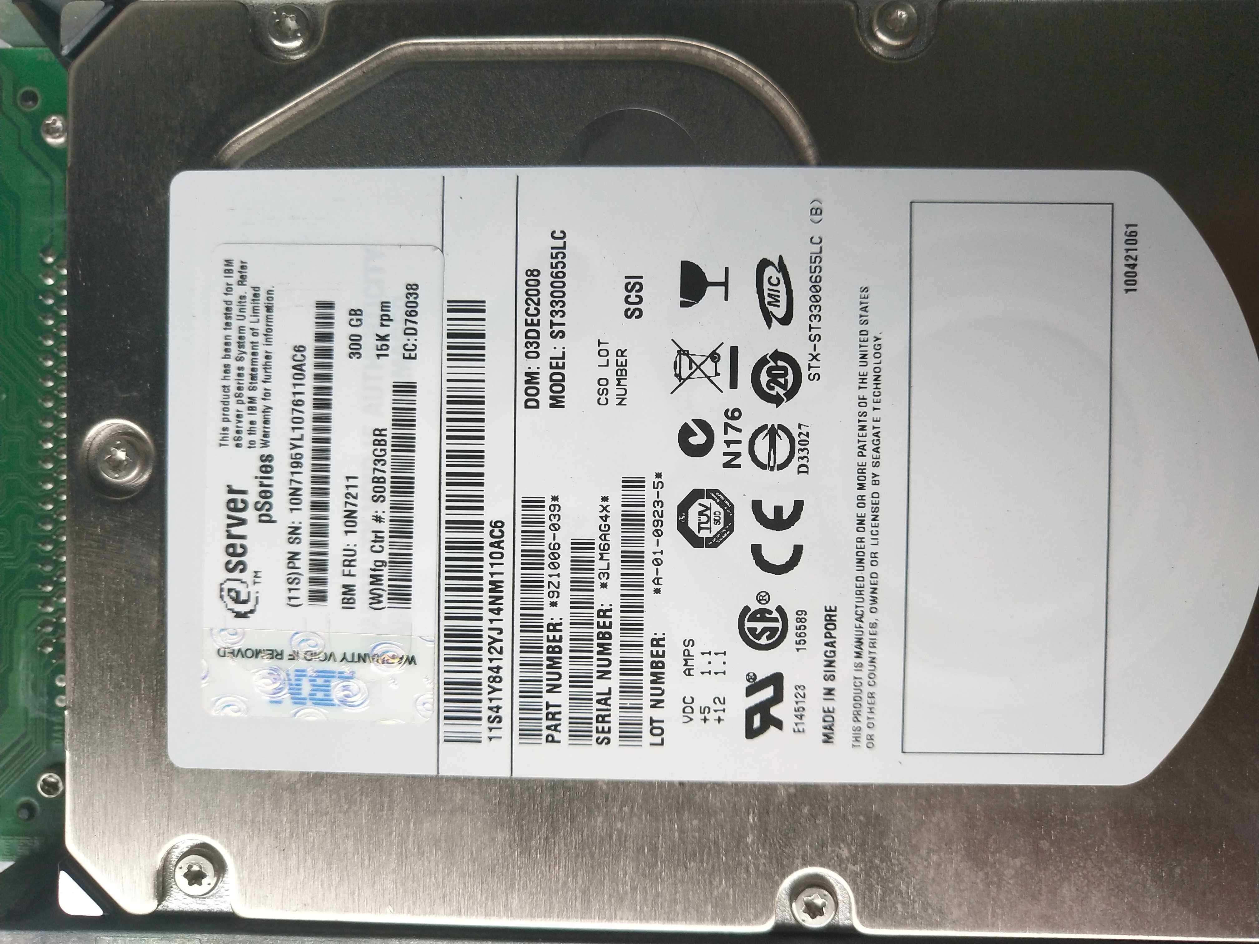 IBM 3585 SCSI 300G 15K 10N7211 10N7195 03N5270 ST3300655LC