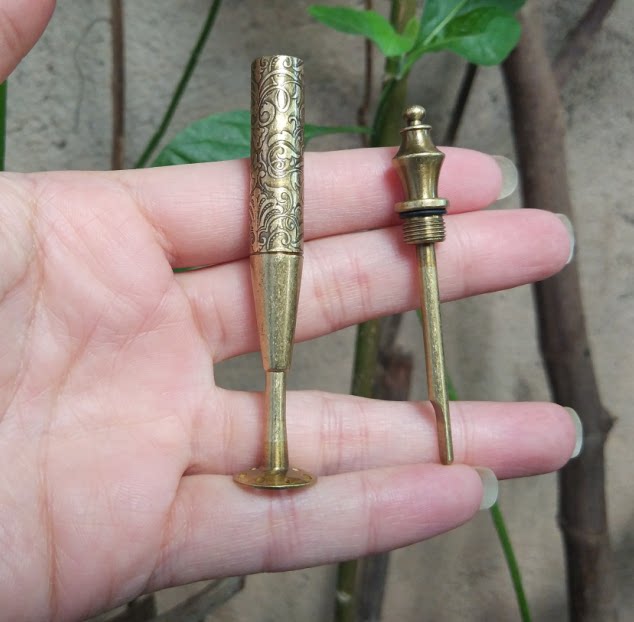 Monsoon JiFENG pipe pressing rod pure copper anti-extinguishing metal cigarette knife through needle carbon repairer antique gold, silver and white tricolor