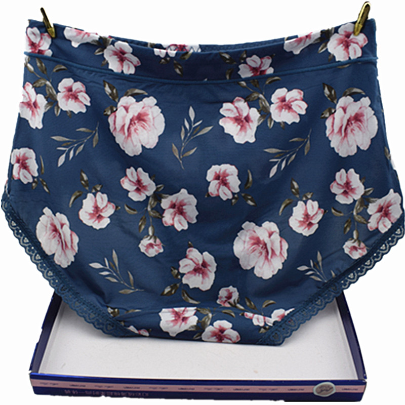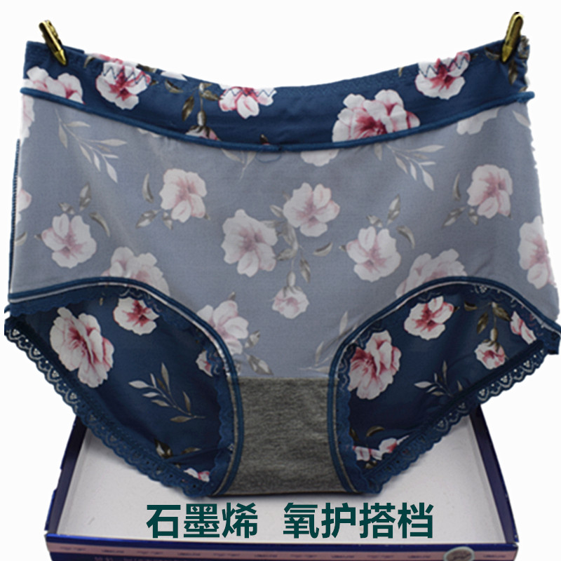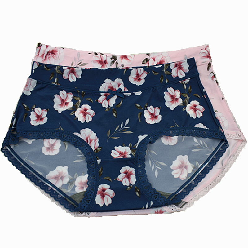 Color field Underpants female middle waist printed lace side ice silk Morandi Milk Silk 21056 No-scratched graphene Large size