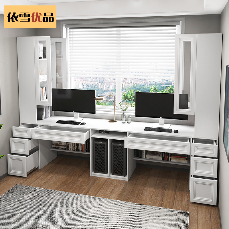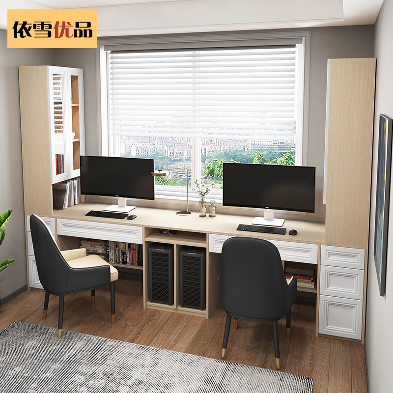Simple modern bay window bookcase desk one household double student desk Desk bookshelf Computer desk combination