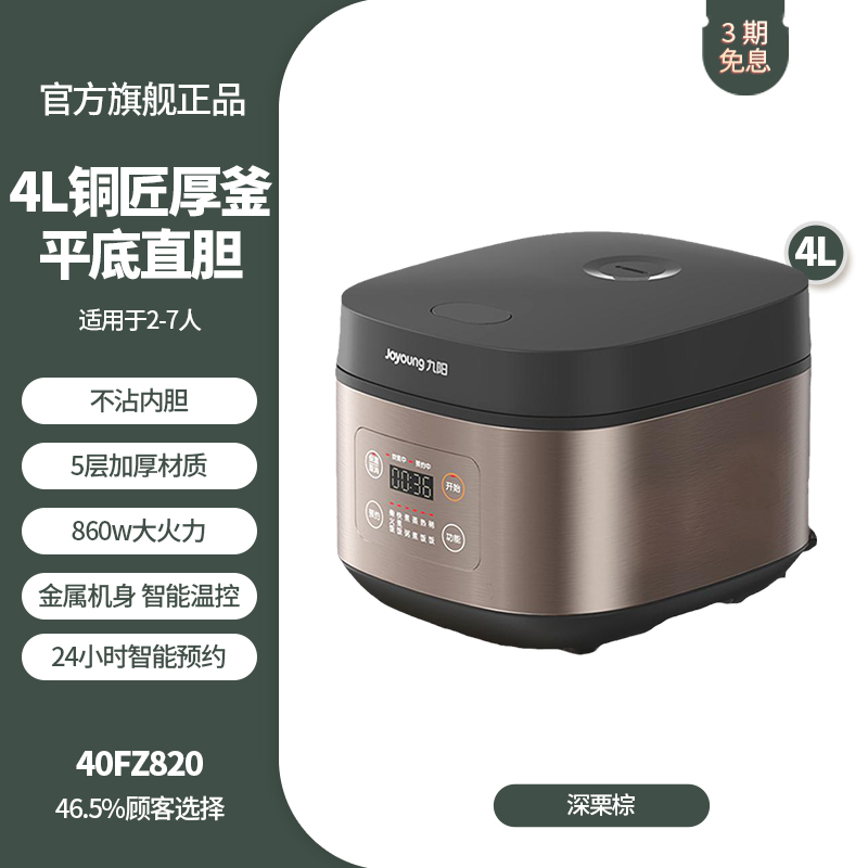 Jiuyang electric cooker with large capacity 4L multifunction home 2-8 people smart without pan electric cooker 40FZ820