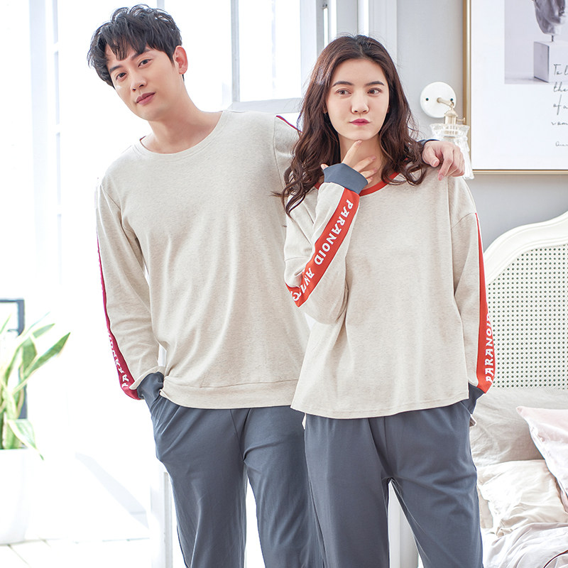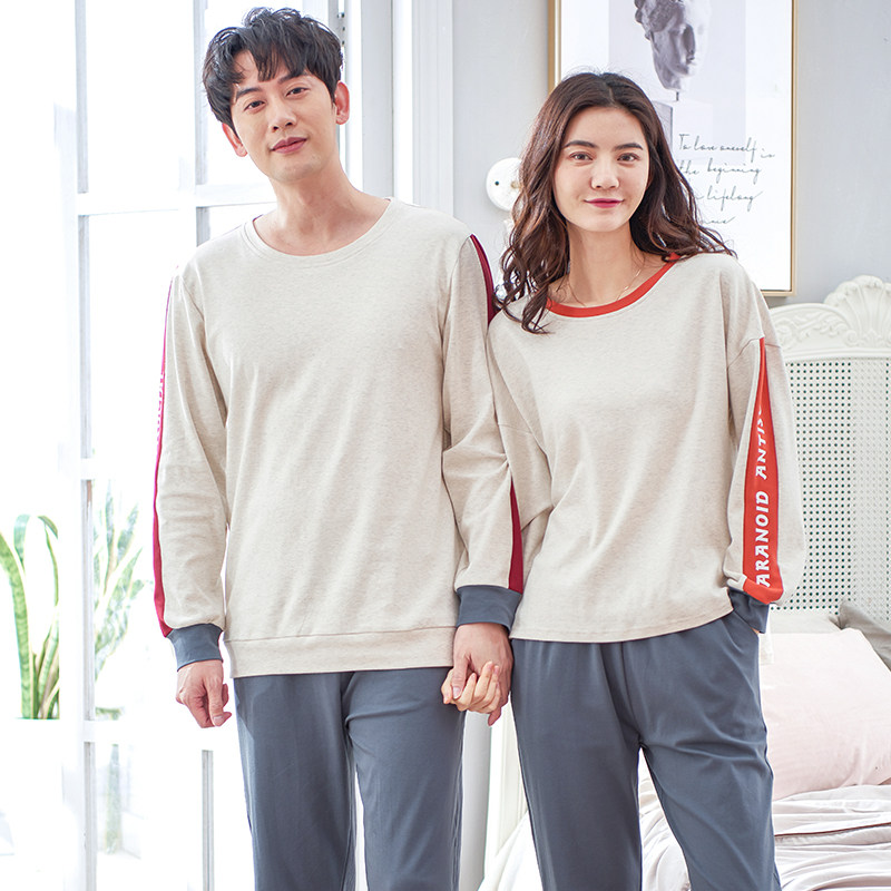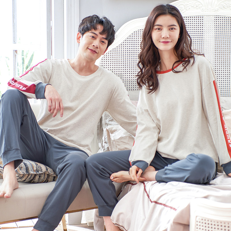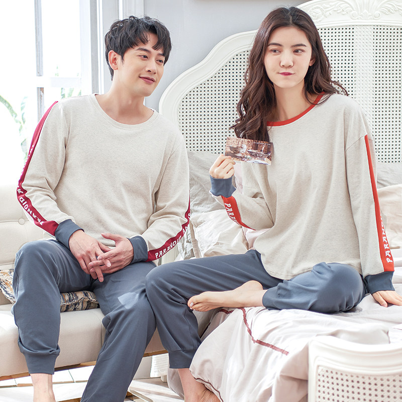Lovers pyjamas for men's spring and autumn, pure cotton long sleeves movement sleeve head full cotton casual home dress Women's spring can go out suit