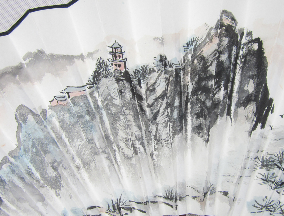 Shandong professional painter Li Yingjie literati painting on paper, Qiushan ancient pagoda landscape into fan original manuscript authentic Chinese painting study room