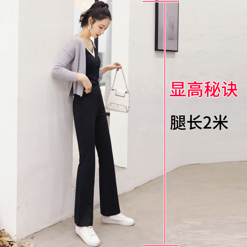 Black sashimi 90% new pituitary micro-horn pants female small straight drum high waist display slim stretch western pants spring autumn