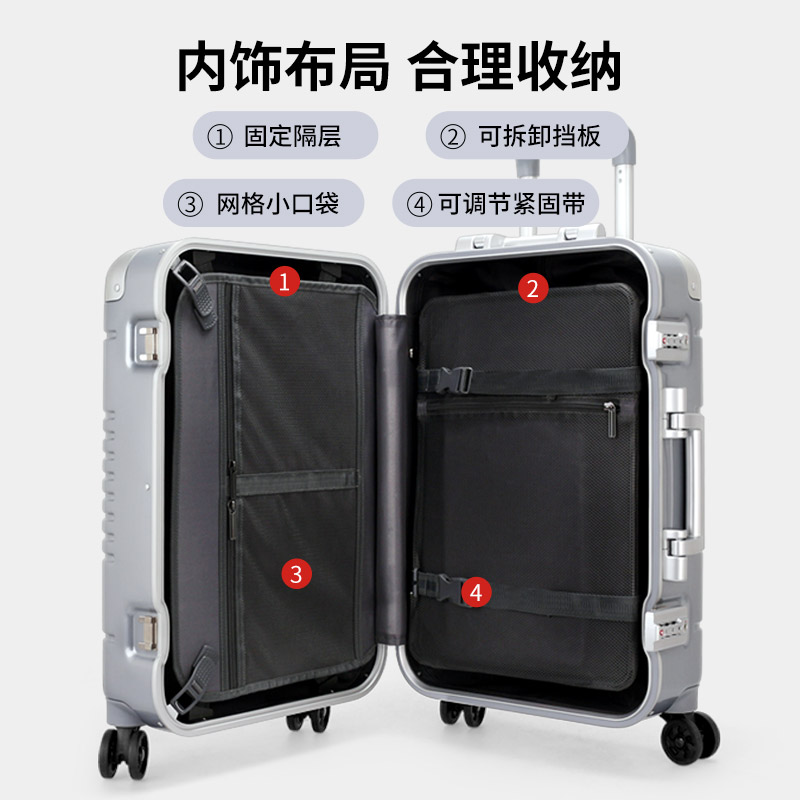 Smol suitcase men aluminum frame universal pull box female 20 inch boarding case suitcase suitcase lockbox 24 pull box