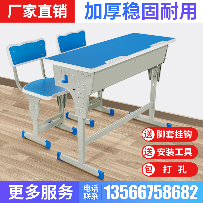 Special price for primary and secondary school students learning desks and chairs thickened can lift single double factory direct sales school training tutoring class