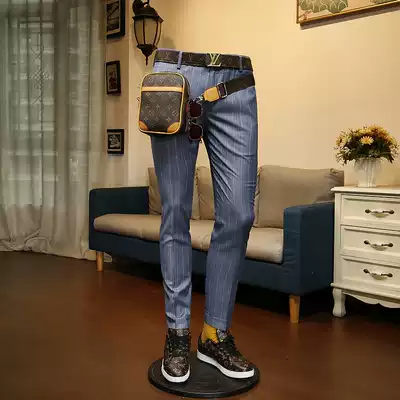 136524 spring new business dress wedding Korean slim groom striped men casual suit suit two-piece suit