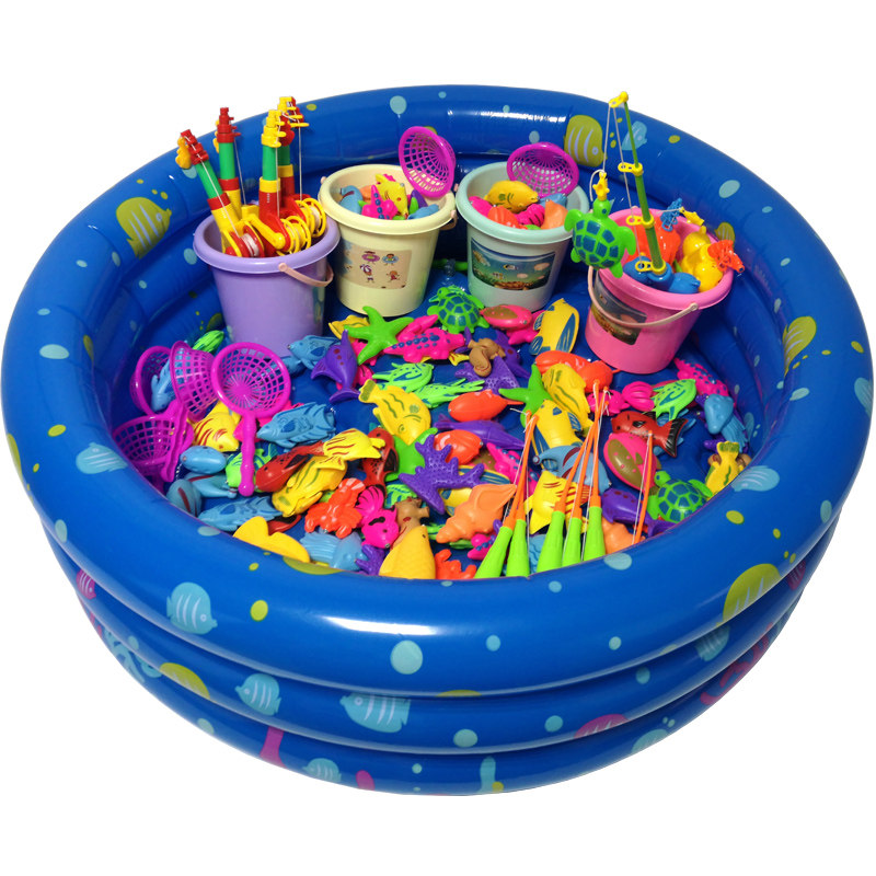 60CM three-layer bubble bottom 31-piece set 60cm three-layer dinosaur pool 48-piece set 20 fish 10 fruits and vegetables 1M pole 1 cat pole 2 net 20 fish 1M pole 1 cat pole 2 net 1 luminous fish 20 fish 2
