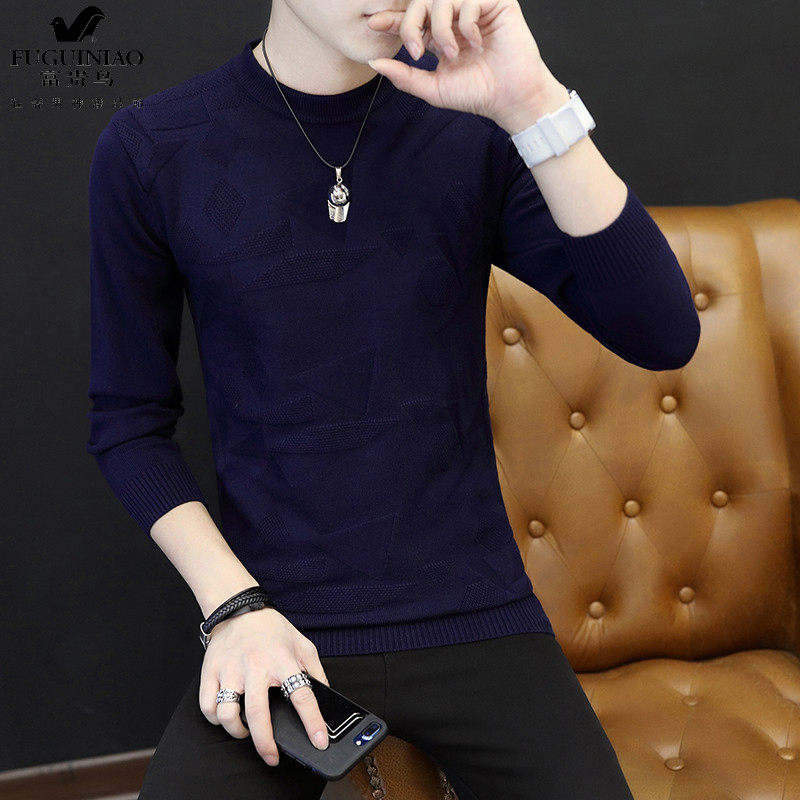 Rich bird men's semi-turtleneck sweater men's 2020 spring and autumn new Korean version of the base of the trend knitted cardigan