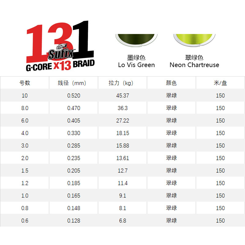 New Sufix BRAIDED 131 super vigorously horse PE line 13 strands braided wear-resistant strong fishing line