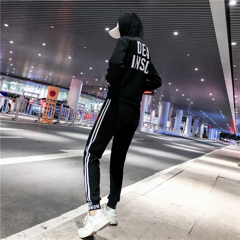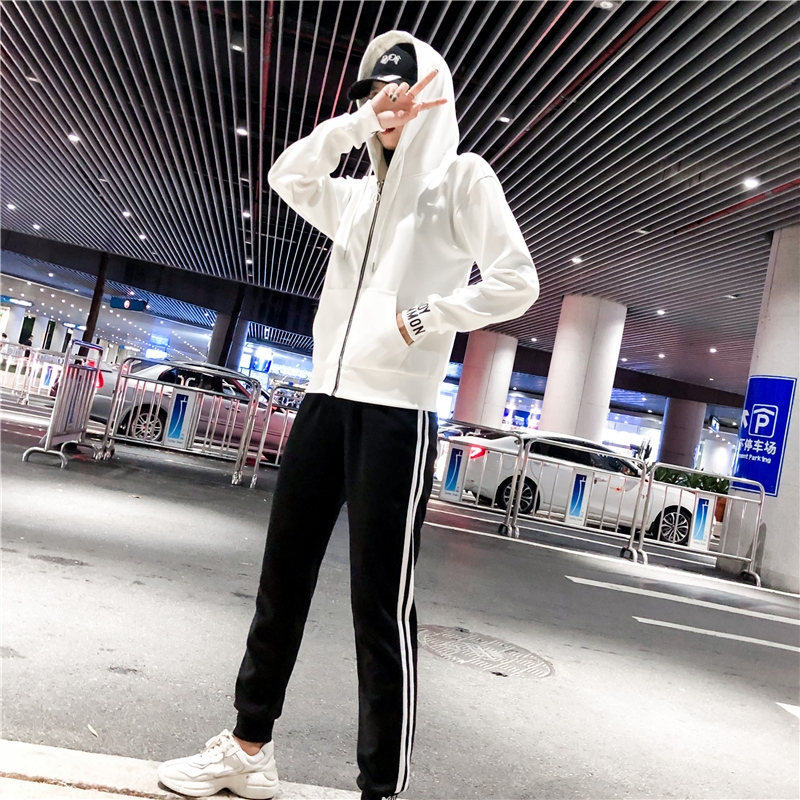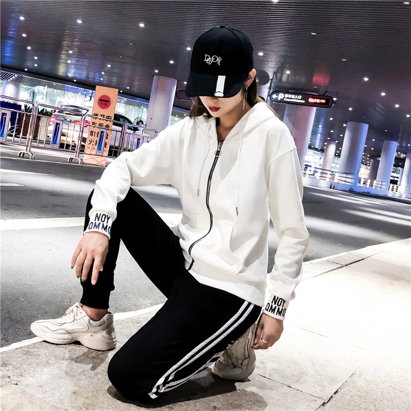 2021 new casual sports suit woman long sleeve Korean version with slim fit and thin pull chain with cap jacket running two sets