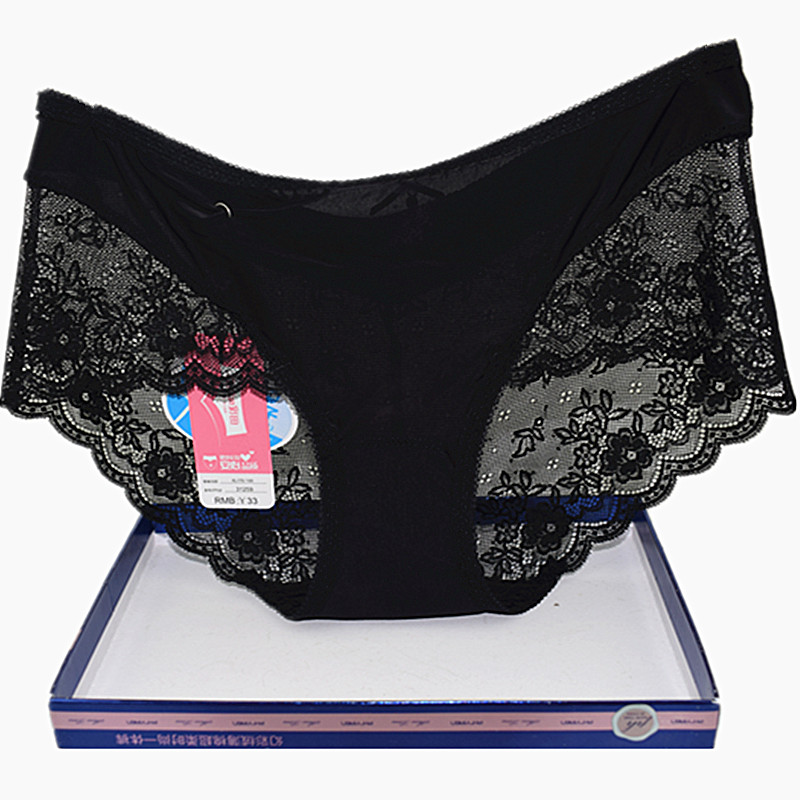 Lady Color Field Ladies Briefs Ice Silk Nylon Lace Side 31259 Mid Waist Flat Feet Black Sexy Silver Silver Cotton Crotch