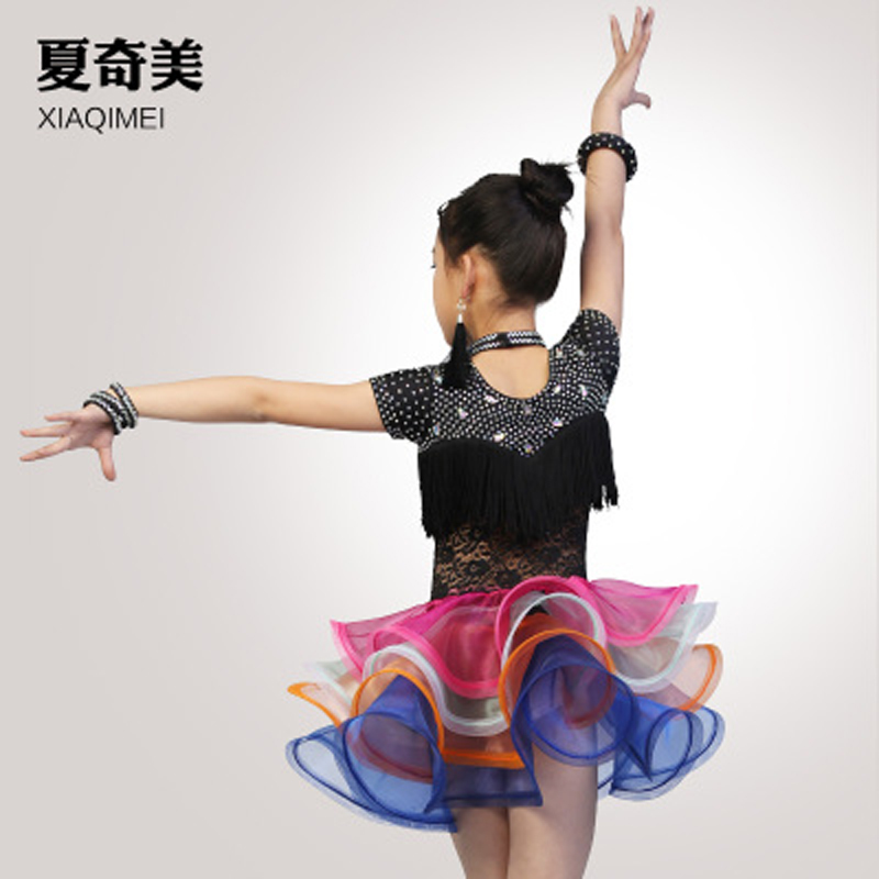 Children's Latin dance competition clothing girls children's dance performance clothing mid-sleeve performance clothing split tutu skirt with diamond flower clothing