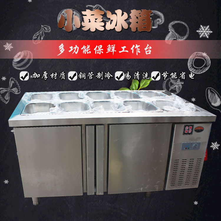 Slotted salad table fresh-keeping workbench milk tea water bar operation table commercial hot and cold cold vegetables refrigerated side dish refrigerator