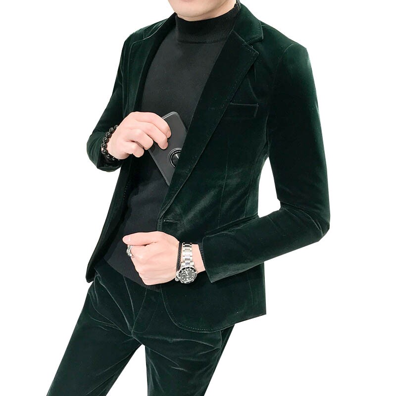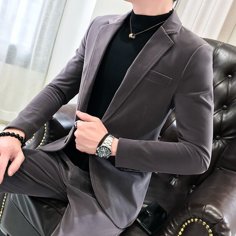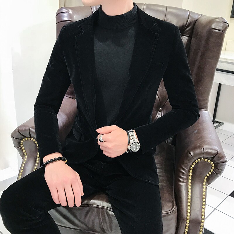 Corduroy suit suit men's hair stylist jacket Long-sleeved small suit men's slim Korean version of the trend men's set