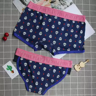 Couple underwear cotton crotch 100% cotton creative sports underwear set personality waist men's flat angle women's triangle
