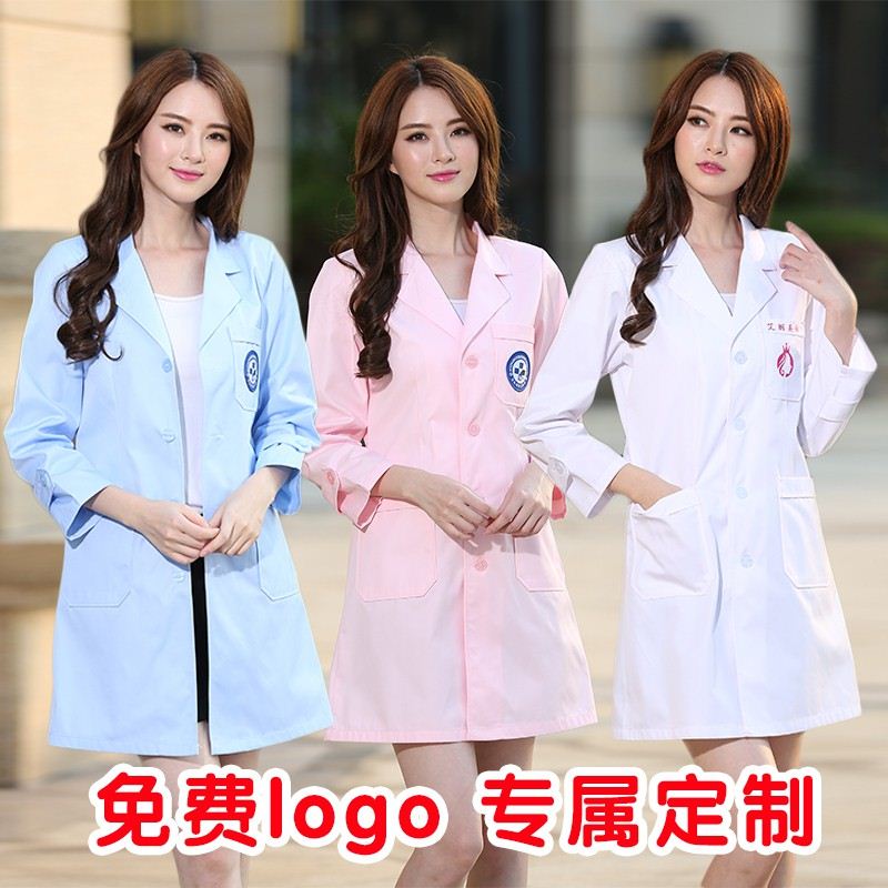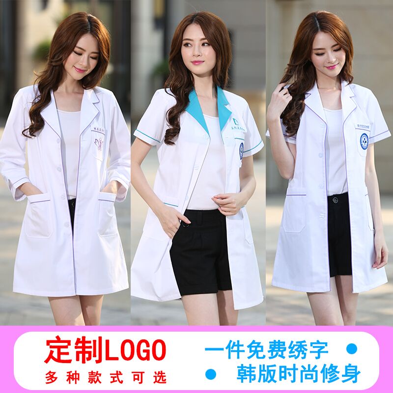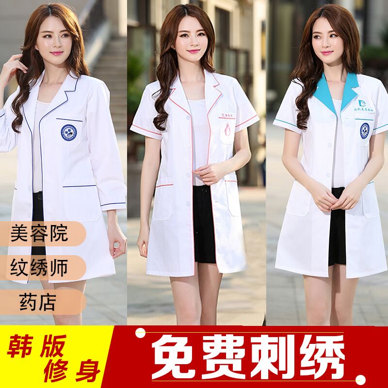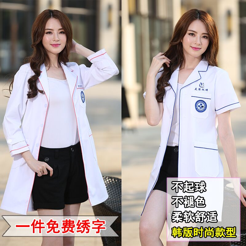 Lab clothes work clothes beautician Chinese medicine thin white coat dental autumn and winter decoration body long wrinkle resistant summer dress white