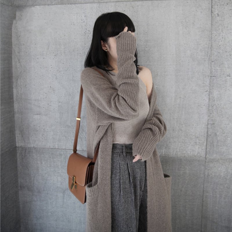 European and American spring and autumn new cashmere coat women's mid-length loose sweater coat knitted cardigan thin section outside specials