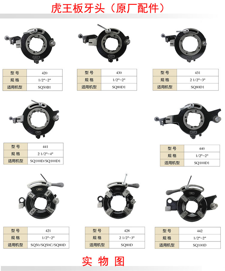 2 inch machine plate tooth head (SQ50B1 SQ50A-G) 3 inch machine small board head (SQ80D1 SQ80A-G) 3 inch machine large board head (SQ80D1 SQ80A-G) 4 inch small board head (SQ100D1 SQ100A-G) 4 inch large board head (SQ100D1 SQ100A-G)
