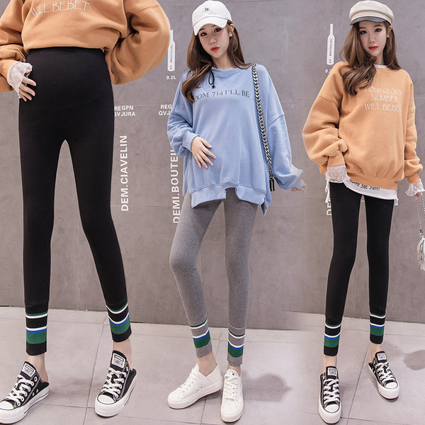 2019 pregnant women spring new belly pants pregnant women's inner pants threaded cigarette tube pants slim inner pants wild pants