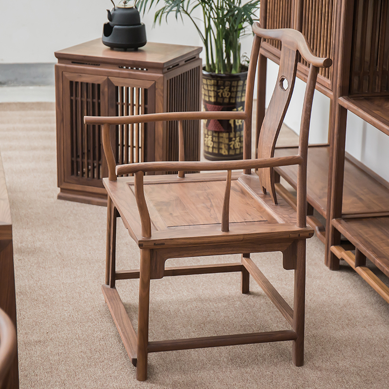 Zhenxin Gong Fang solid wood circle chair official hat chair new Chinese style black walnut chair armchair armchair antique Zen furniture