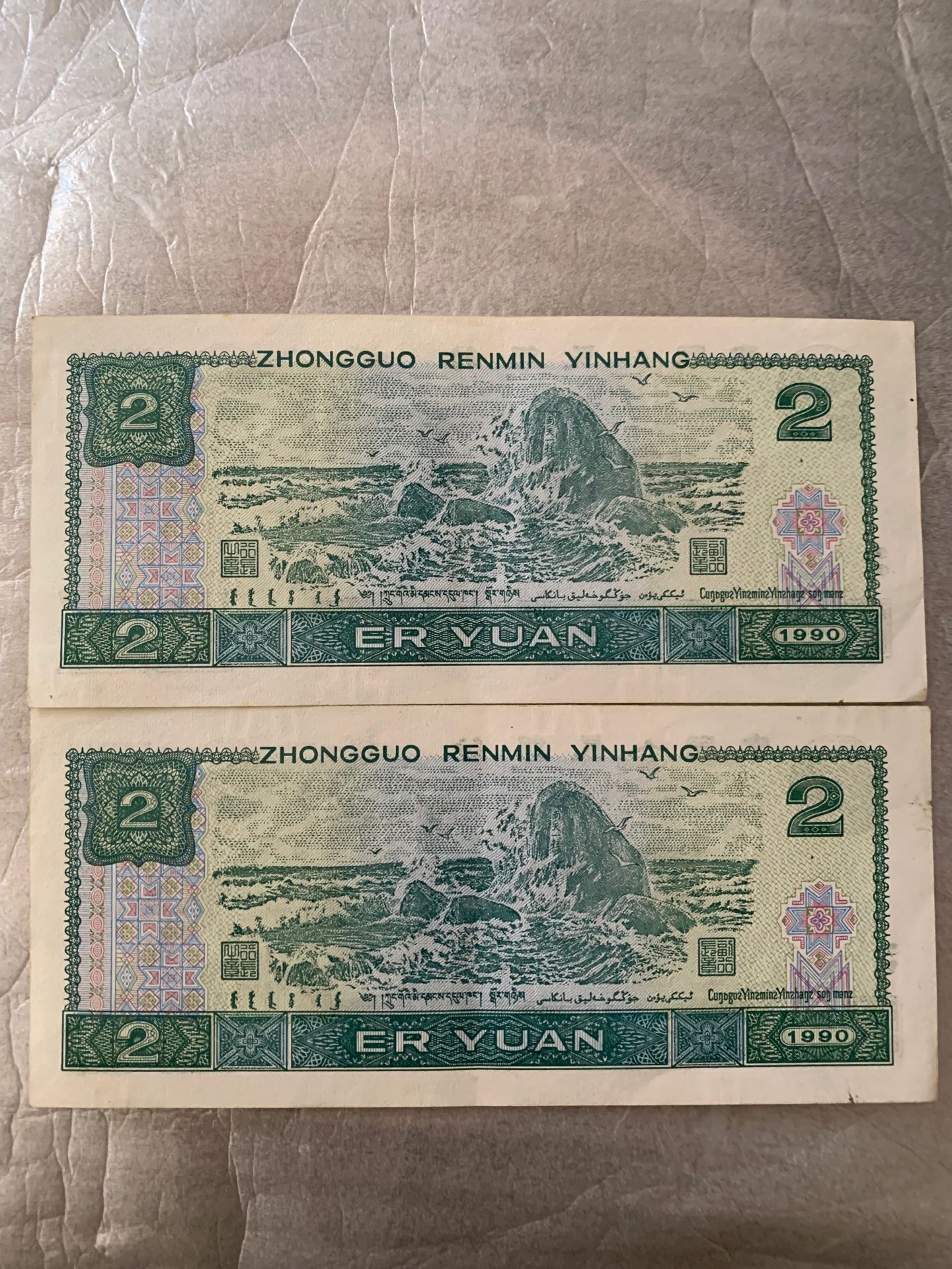 Fourth set of RMBtwo yuan 1990 2 yuan 2 yuan notes 4 prints old coin RMBtwo 902