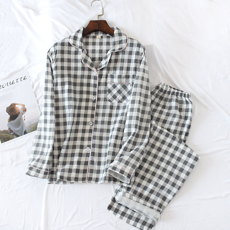 Sleepwear Pants Sets Lovers Spring Autumn Pure Cotton Cotton Cloth Day Style Summer Slim long sleeves No Inprint Wind Men and women casual home clothes