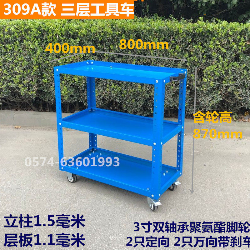 Blue 309 three-tiered tool car blue 309 with hanging plate triple tool car blue 309 with side hole plate tool car blue 309 side hole plate hanging plate tool car dark grey