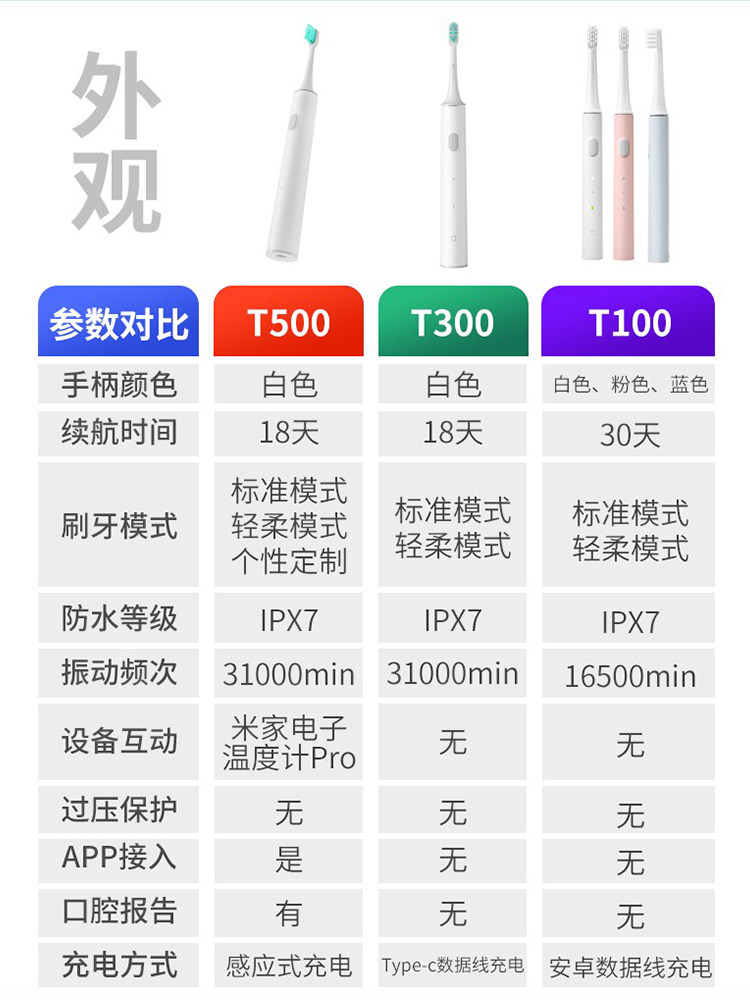 T500 white brush head 1 T500 blue brush head 1 T500 pink brush head 1 T500 white custom brush head*3T500 blue custom