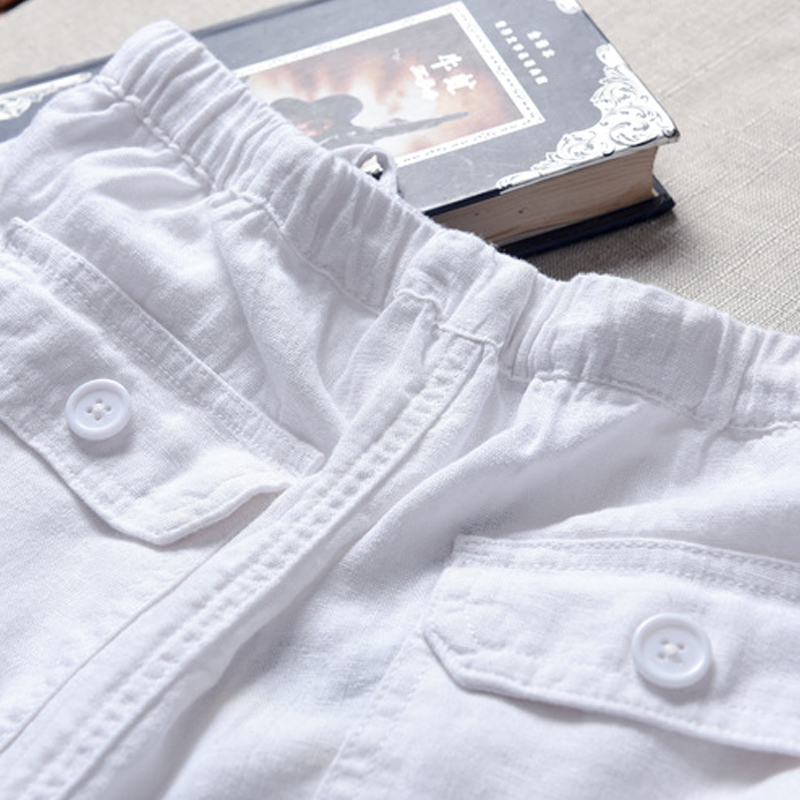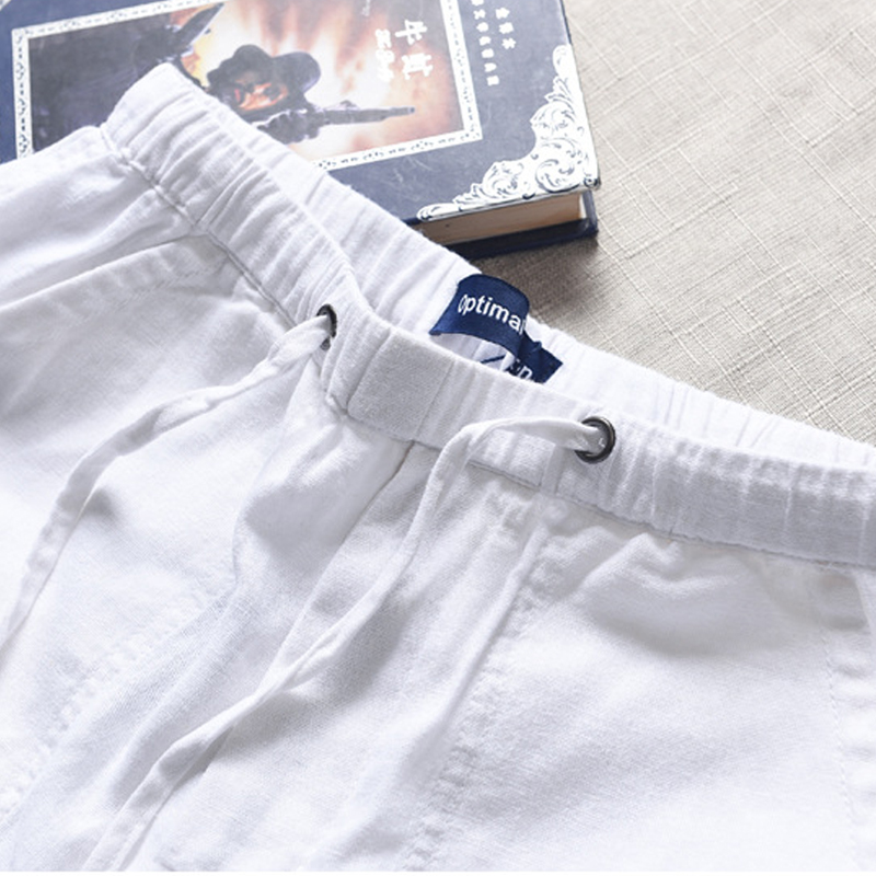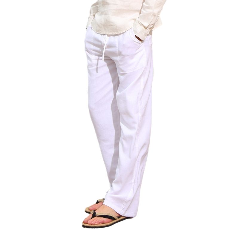 Hong Kong Linen Casual Pants Loose Slim Breathable Elastic Tie Rope Large Size Beach White Straight Drum Cotton Linen Trousers Men's Pants Men's Pants Male