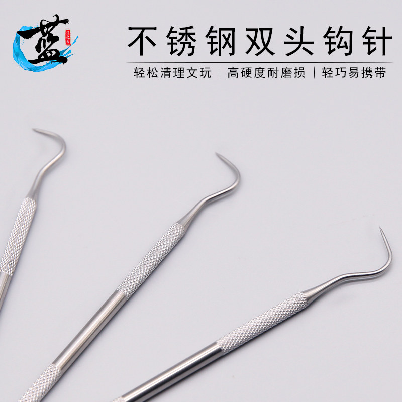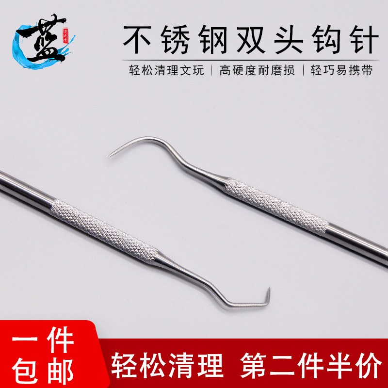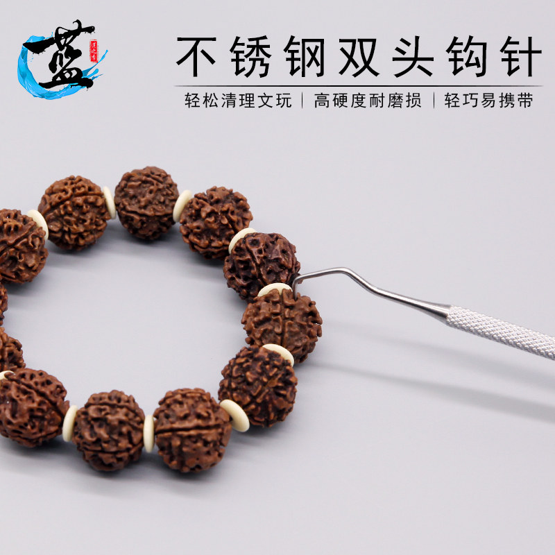 Stainless steel double-headed crochet text play tool walnut olive pick needle diamond walnut bodhisattva shaving pick needle crochet cleaning brush