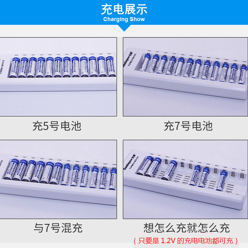 Doubling 5 Number of charger 12 slot Smart turn light rechargeable No. 7 General nickel Hydronickel cadmium AA AAA charger KTV