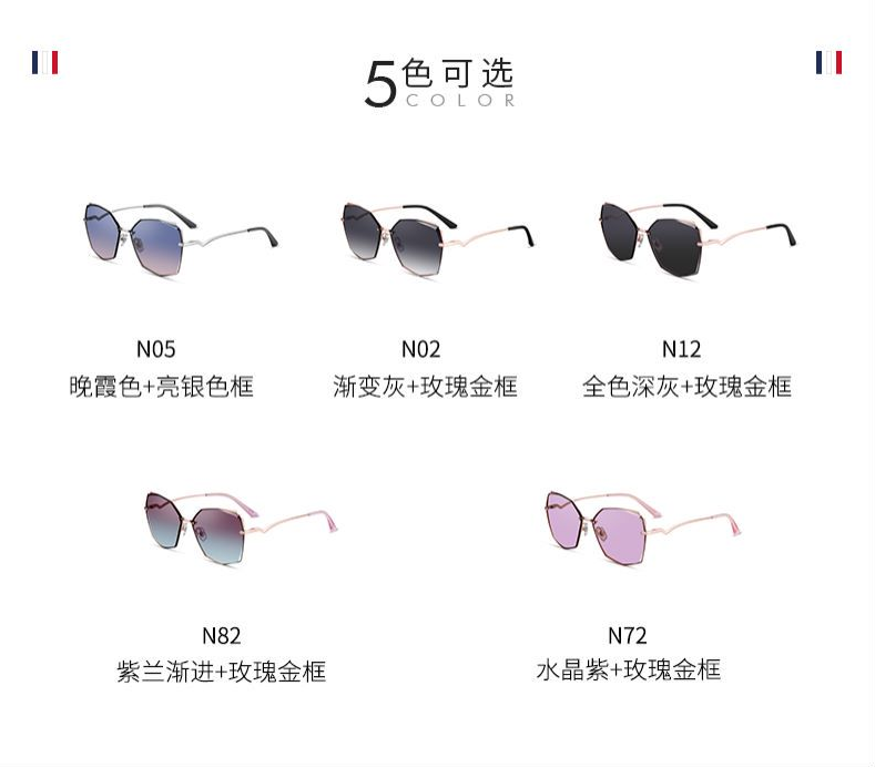 Asymptotic grey-rose gold frame -N02 night Shades-bright silver frame -N05 full colour deep grey-rose gold frame -N12 Purple progressive-rose gold frame N82 crystal purple-rose gold frame N72