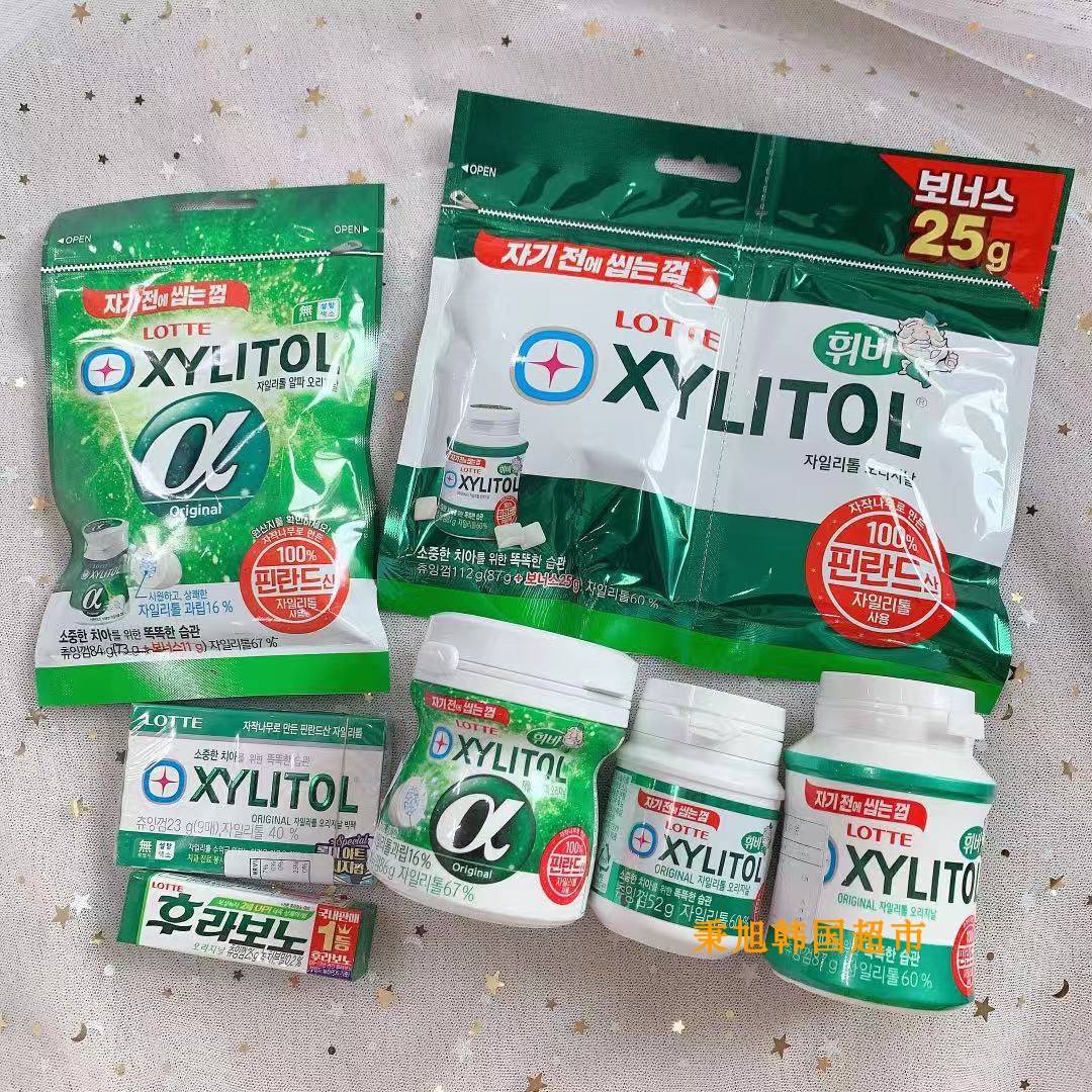 South Korea imported XYLITOL Lotte Black Xylitol chewing gum Alpha bubblegum supplement bagged barrel spicy