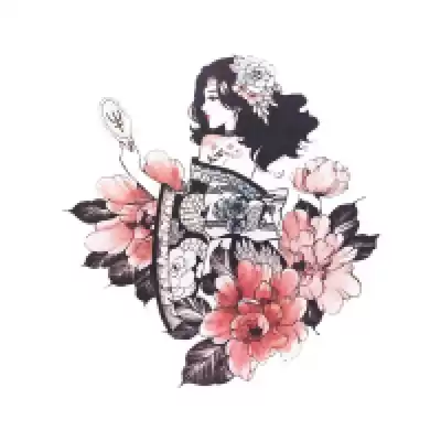 Material hand-painted girl tattoo stickers waterproof long-lasting large pattern flower arm thigh tattoo Japanese soft girl Ukiyo-e