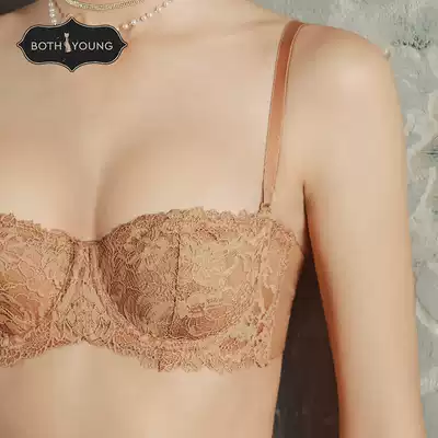 Bao Shiyan strapless underwear women gather non-slip big chest small summer ultra-thin sexy lace half cup bra