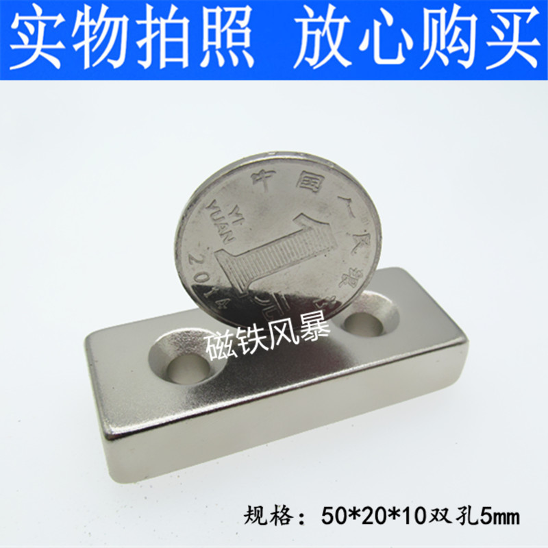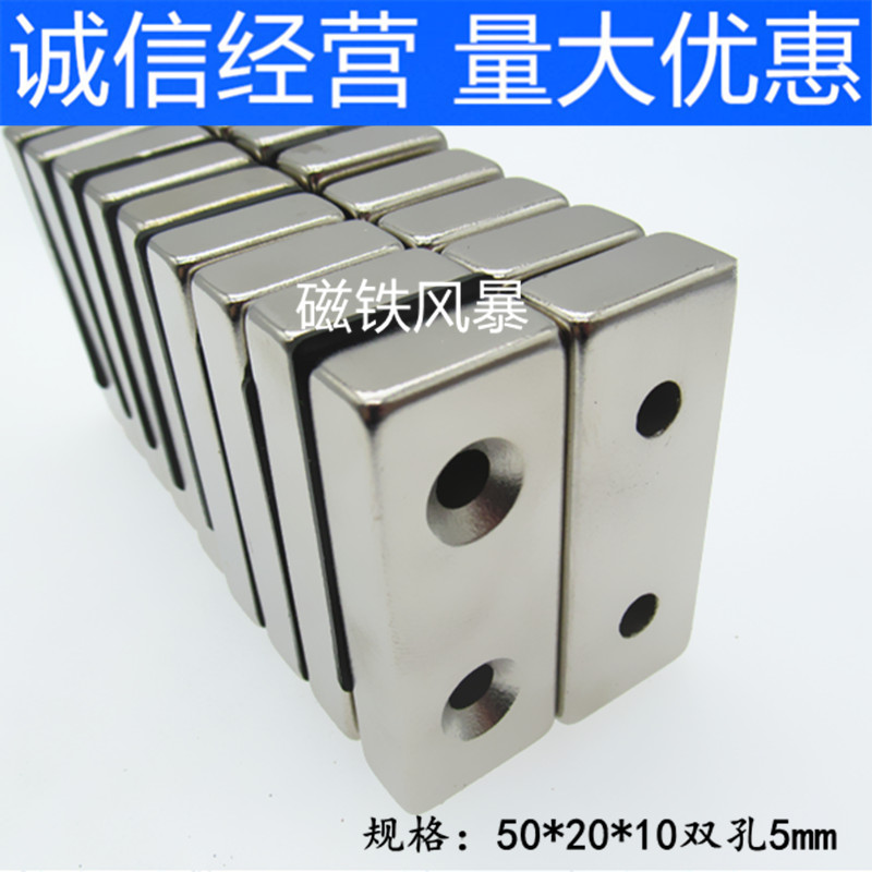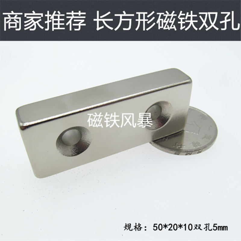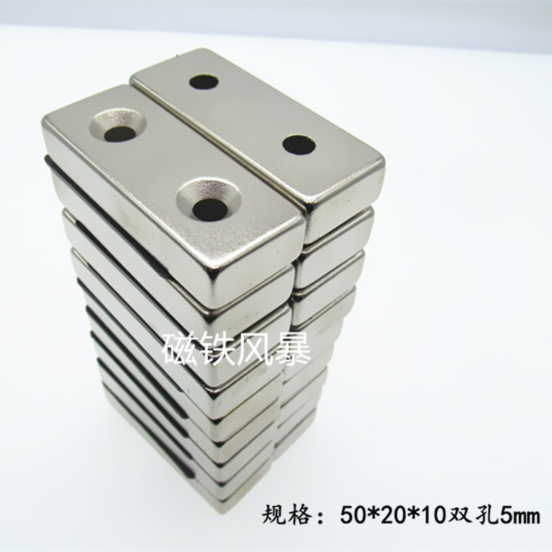 NdFeB super strong magnet magnet powerful magnetic steel with hole rectangular magnet 50X20X10 double hole 5mm
