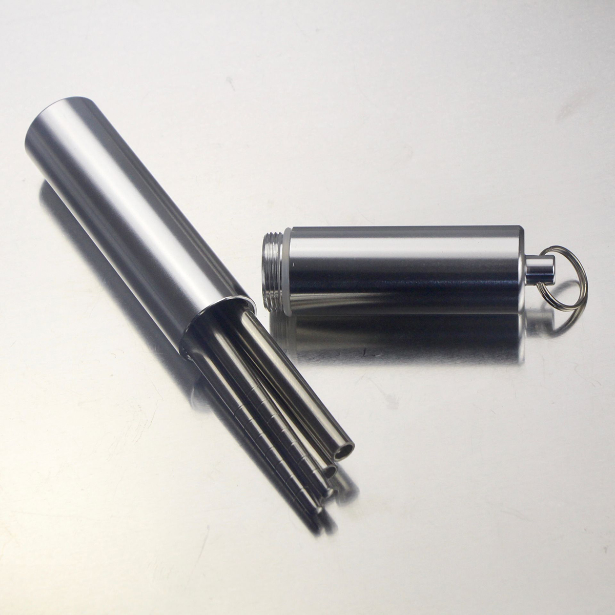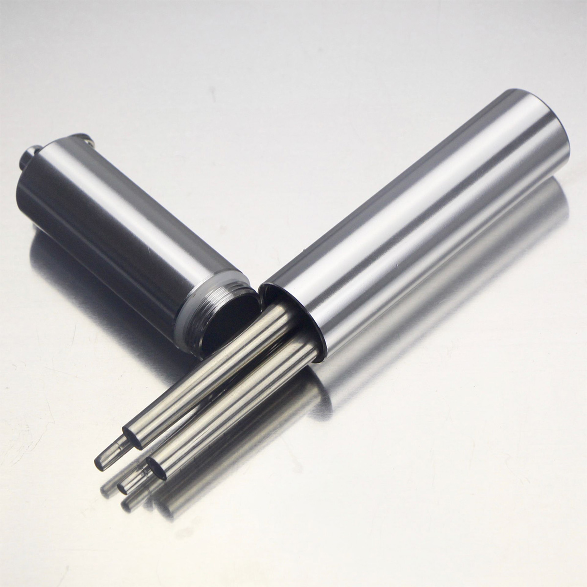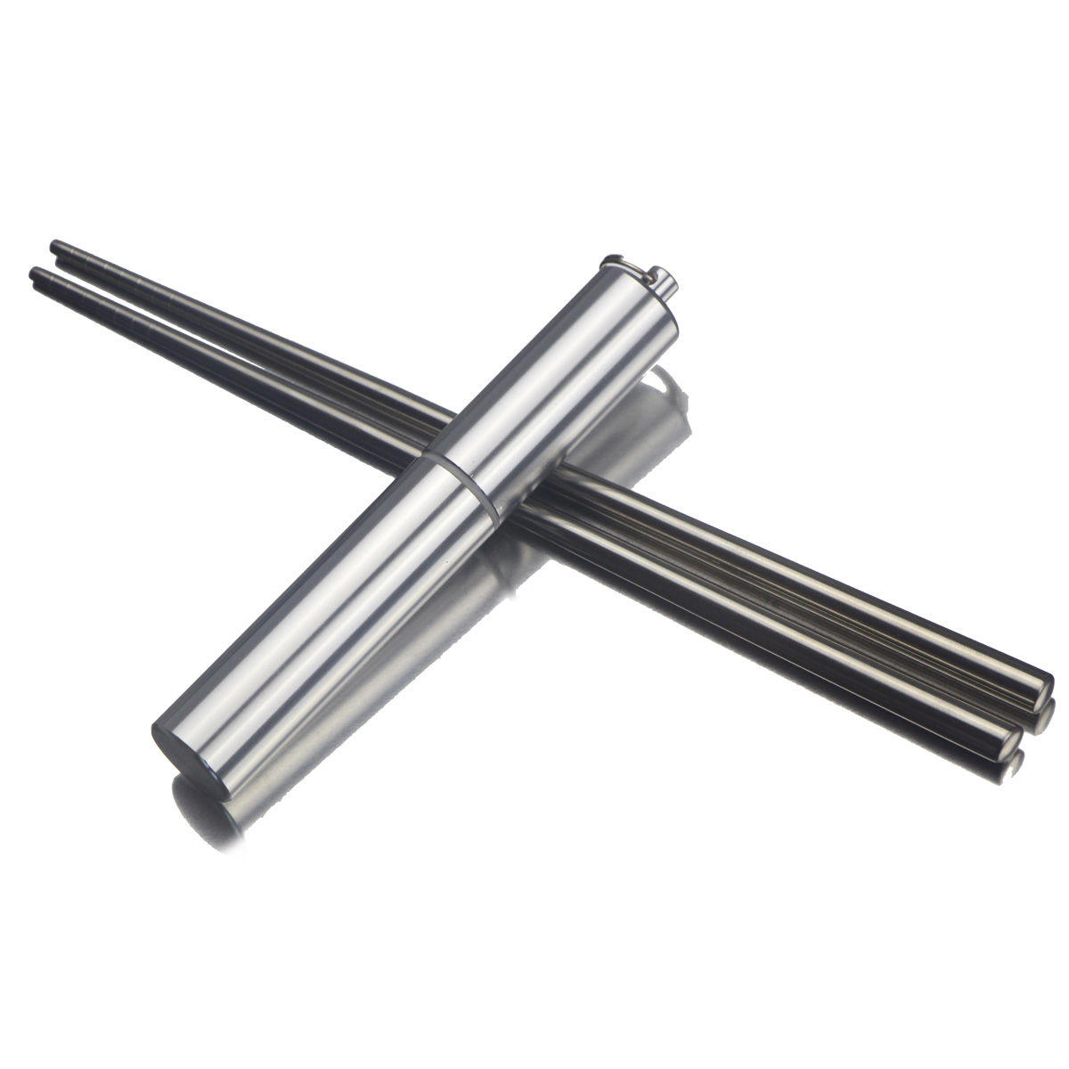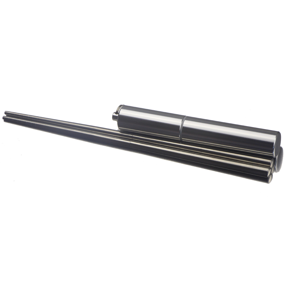 A pair of stainless steel chopstick metal containing cylinder 1 double solid folded chopstick (93 gr) containing cylinder 2 double solid folded chopsticks (180 gr) containing cylinder