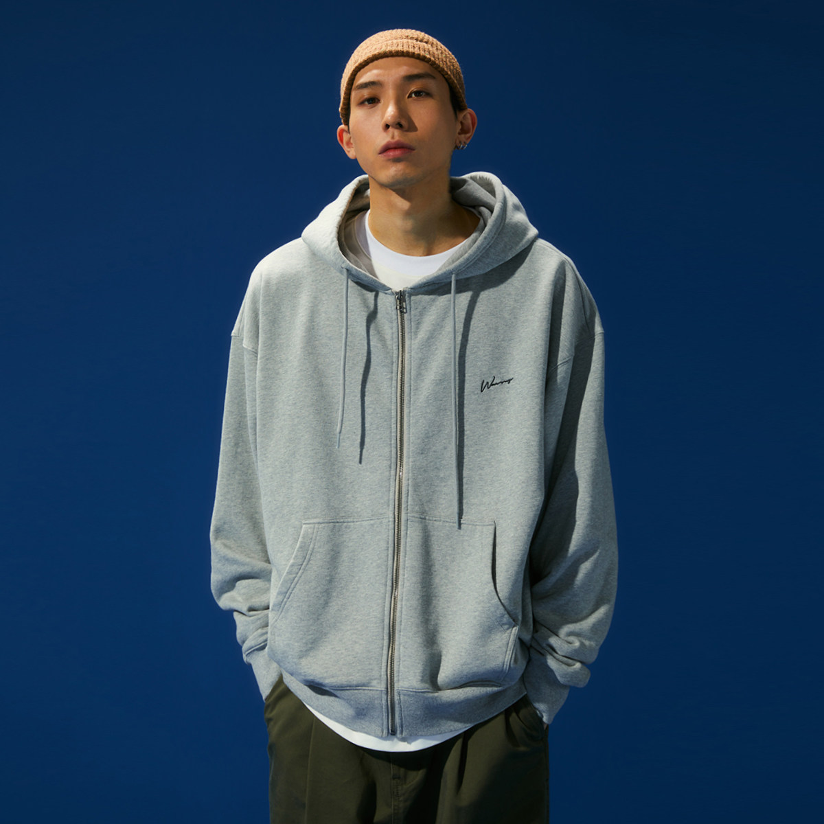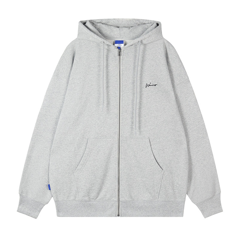 WASSUP tide brand gray black cardigan hooded sweater loose velvet zipper jacket autumn and winter men and women couples