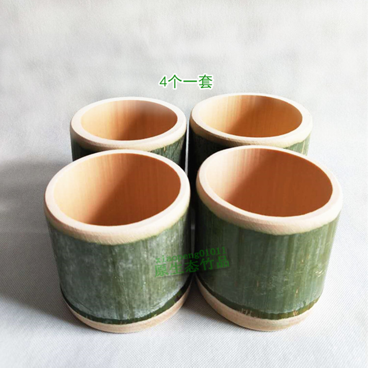 Fresh bamboo tube custom made bamboo bowl bamboo cup bamboo tube rice bamboo steamer green bamboo tube 4 set