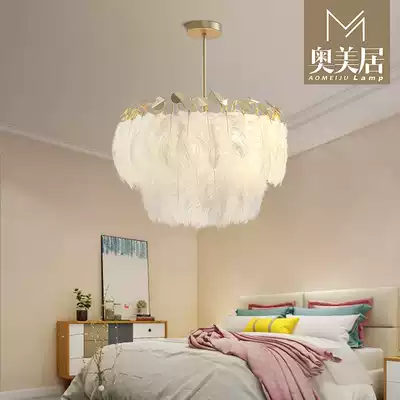 Nordic feather lamp Children's room bedroom lamp Warm romantic lamp Net red living room lamp Modern simple light luxury chandelier