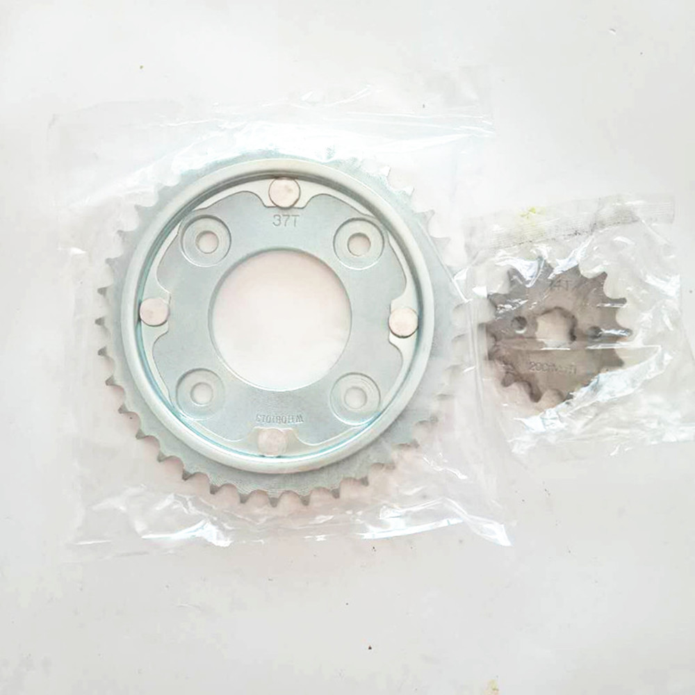 A set of three - piece chain set of 14 teeth one 37 teeth one 14 teeth 37 teeth 428 - 104 chain one