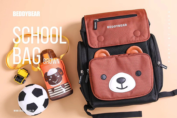 Cup Bear Elementary School Kids Minus Minus Double Shoulder Bag Skin Leather Series Big Eyes Series School Bag Ultra Light Big Space